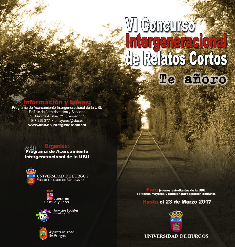 El Vicerrectorado de Estudiantes de la UBU, a través del Programa de Acercamiento Intergeneracional, convoca el VI Concurso Intergeneracional de Relatos Cortos “Te añoro” Los interesados tienen de plazo hasta el 23 de marzo para participar en alguna de las tres categorías establecidas: Jóvenes estudiantes de la Universidad de Burgos menores de 30 años. Personas […]