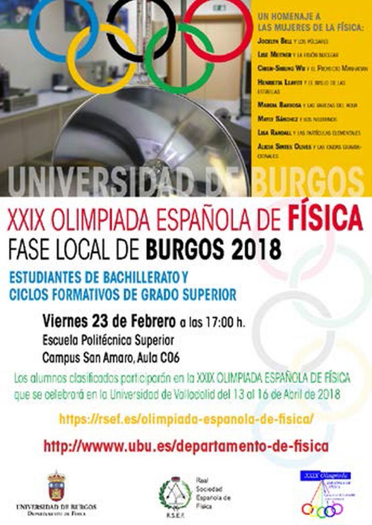 La Fase local de la XXIX Olimpiada Española de Física se celebrará el próximo viernes 23 de febrero organizada por el Departamento de Física de la Universidad de Burgos Este año 2018, el Comité Local de la OEF de Burgos ha querido homenajear a las Mujeres de la Física, representadas por algunas científicas y sus […]