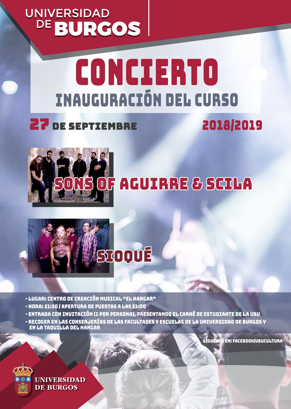 ¡Todavía estáis a tiempo, la entrada se obtiene por invitación (una por persona) presentando el carné de estudiante de la UBU y se podrán recoger en las conserjerías de las Facultades y Escuelas de la Universidad de Burgos y en la taquilla del Hangar.