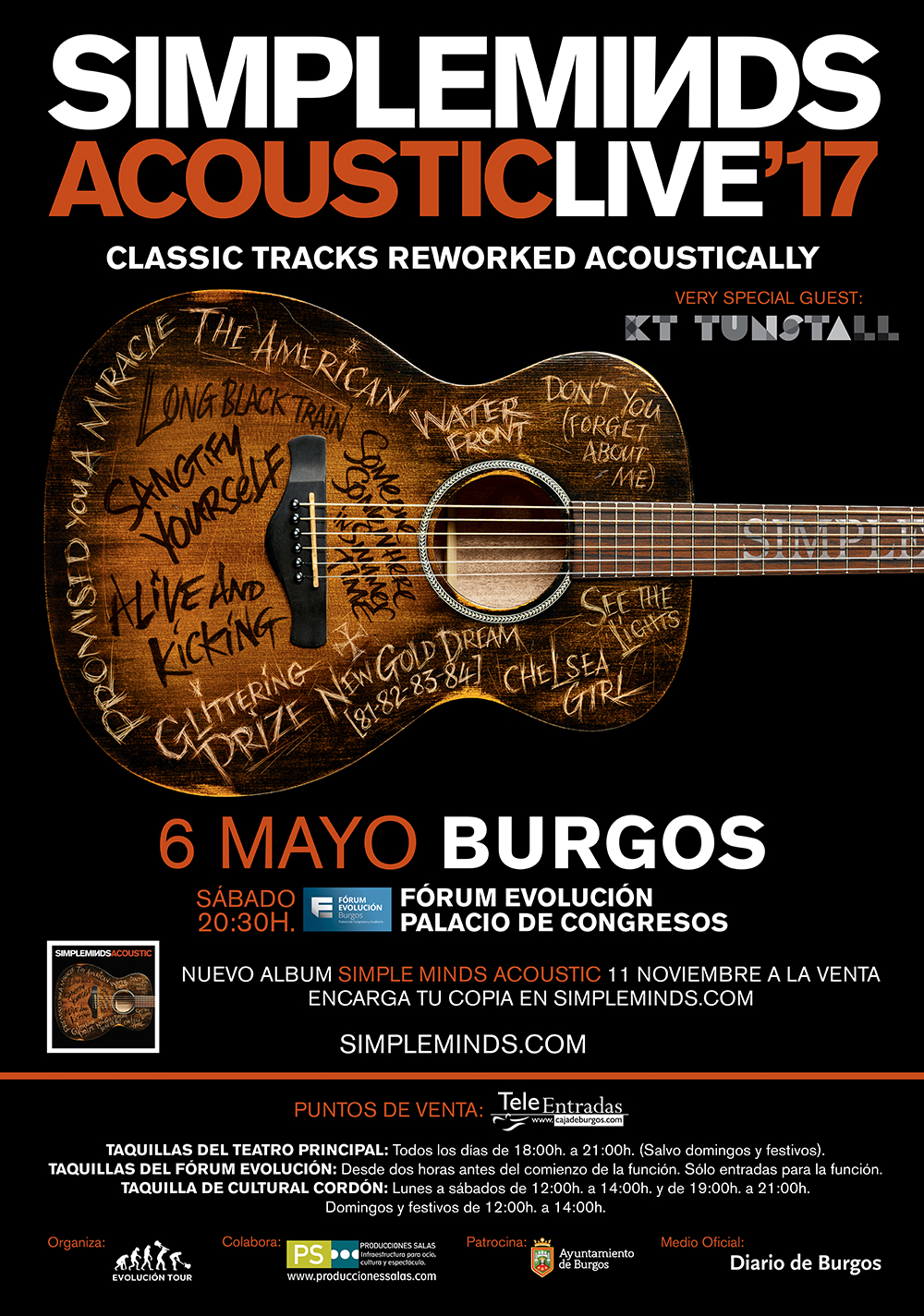El 6 de mayo a las 20:30 Simple Minds ofrecerá un concierto en el Auditorio/Palacio de Congresos Fórum Evolución Burgos.
