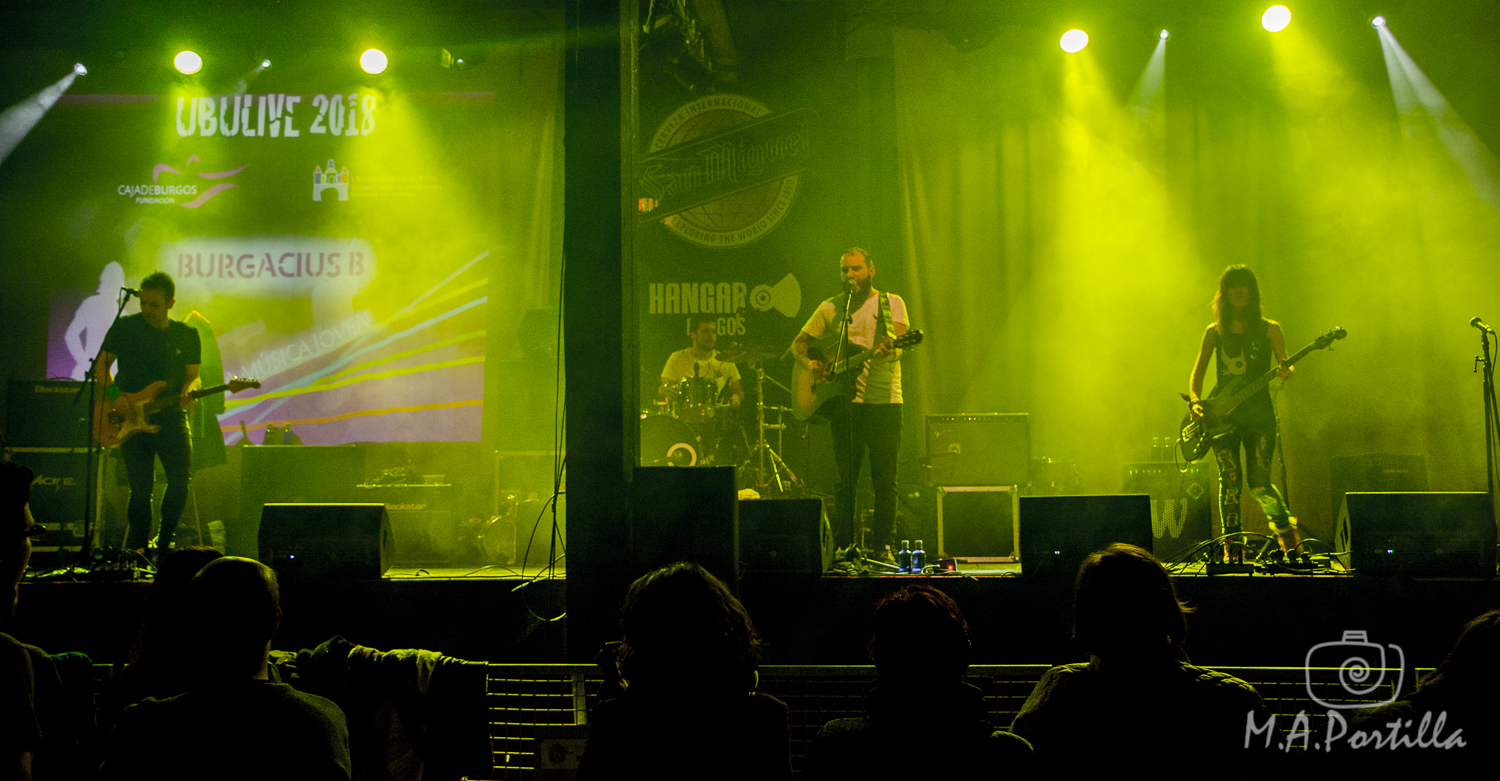 - Burgacius B: el grupo formado por Pablo González López: voz principal, guitarra acústica y guitarra eléctrica / Mario Nuño Garay: guitarra principal y coros / Roberto Moral Hernández: batería y coros / África Brizuela Ruiz: bajo, nos presentó un buen show, con una propuesta musical de rock tradicional que recibe claras influencias del rock español de los 80 y 90 y con letras que beben del humor mas visceral, centrado en figuras cotidianas. Un buen concierto que nos dejó con ganas de un rock mas concienzudo y poético.