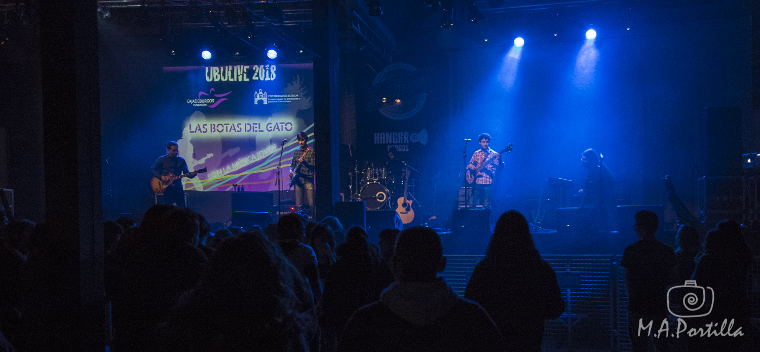 - Las botas del gato: El grupo formado por Mikel Sánchez: voz y guitarra / Alejandro Gutiérrez: guitarra y coros / Silvio Fernando Camacho: bajo y coros / Hugo Martínez: teclado / Samuel Arias: batería y coros, nos ha ofrecido un mix de canciones propias y versiones. Se mueven entre el poprock y el indie, con buenas letras trabajadas con cariño que relatan la vida de un joven universitario en la extraña sociedad actual. En resumen, un buen concierto que nos dejó con ganas de más, oiremos su nombre en un futuro no muy lejano.